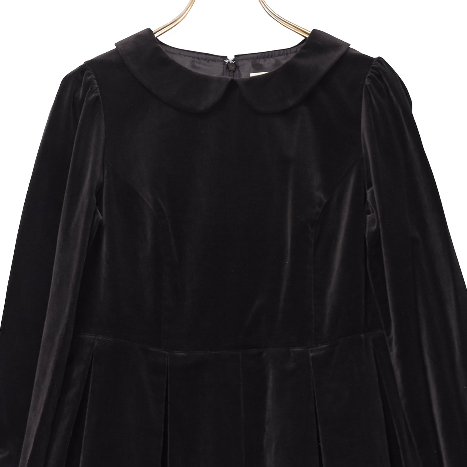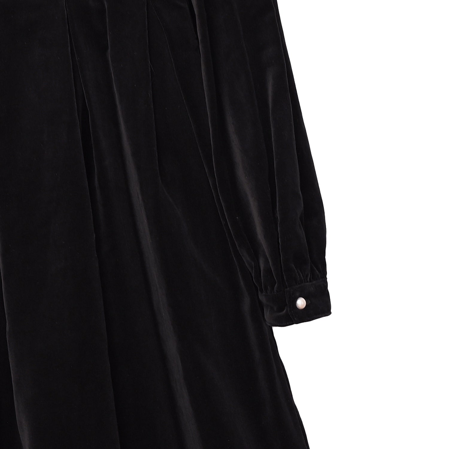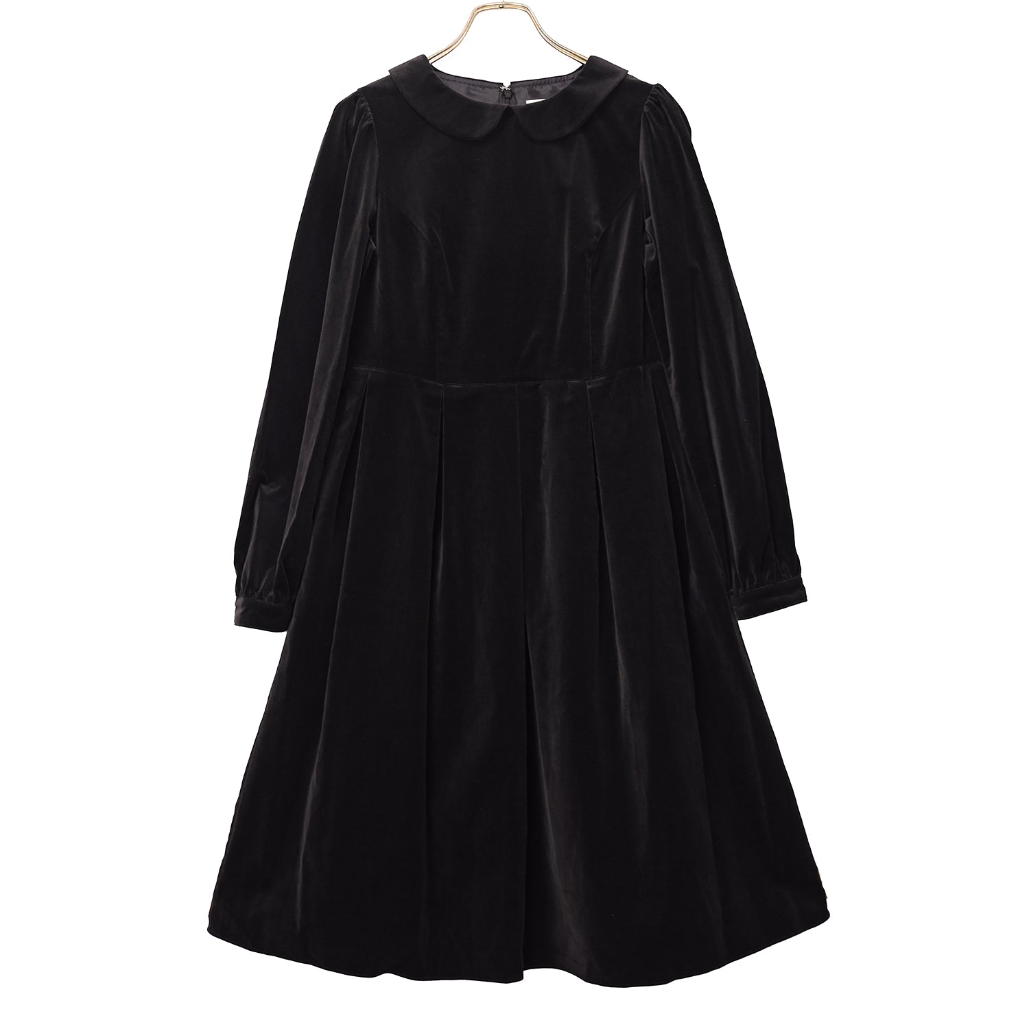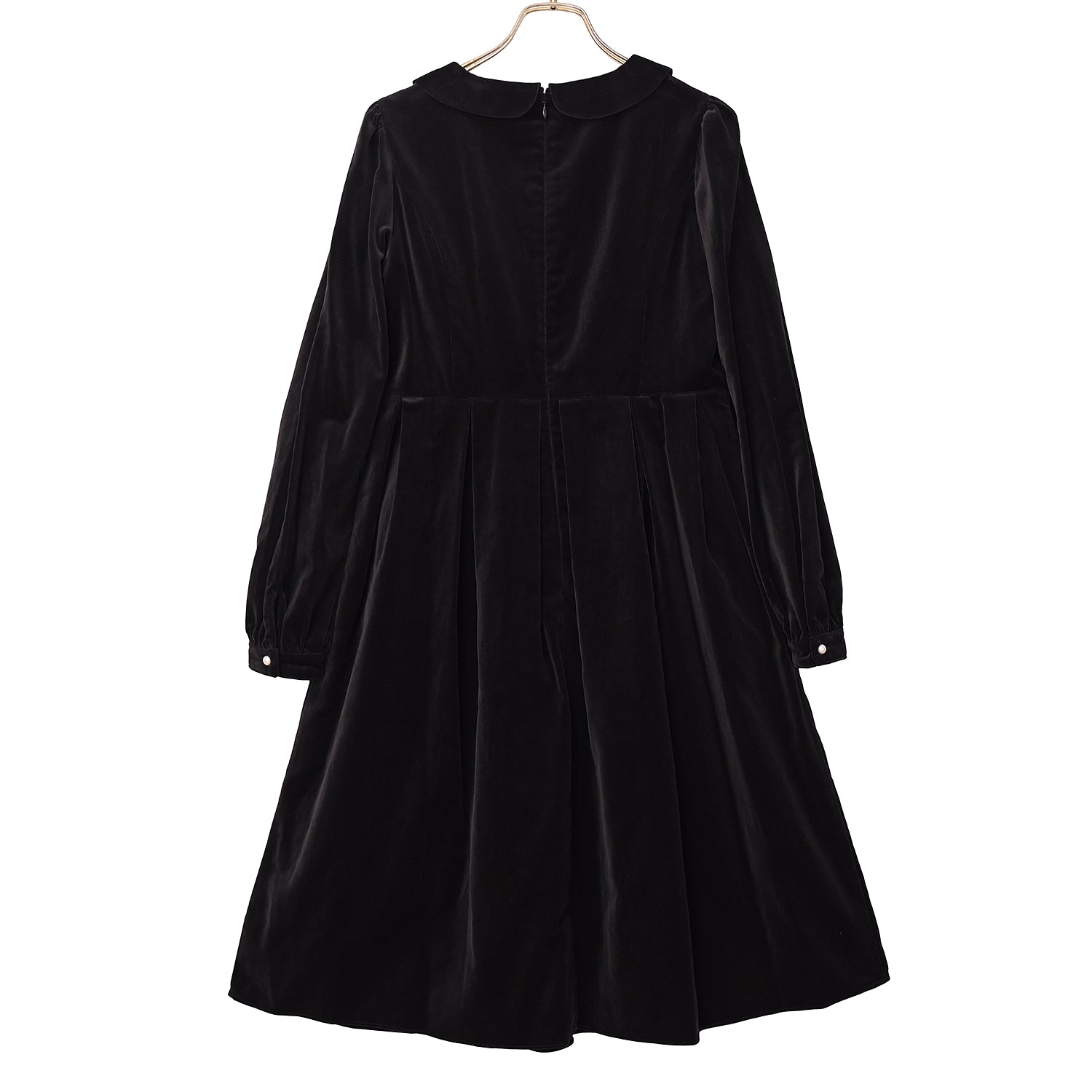 後ろファスナー開閉仕様。袖口ボタン開閉仕様。スカート右脇ポケット付き。国内生産。