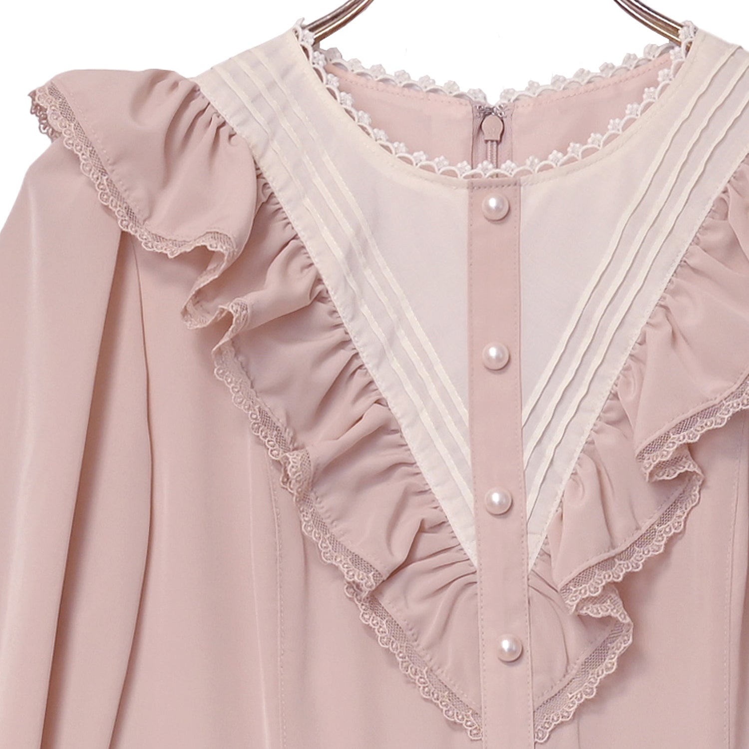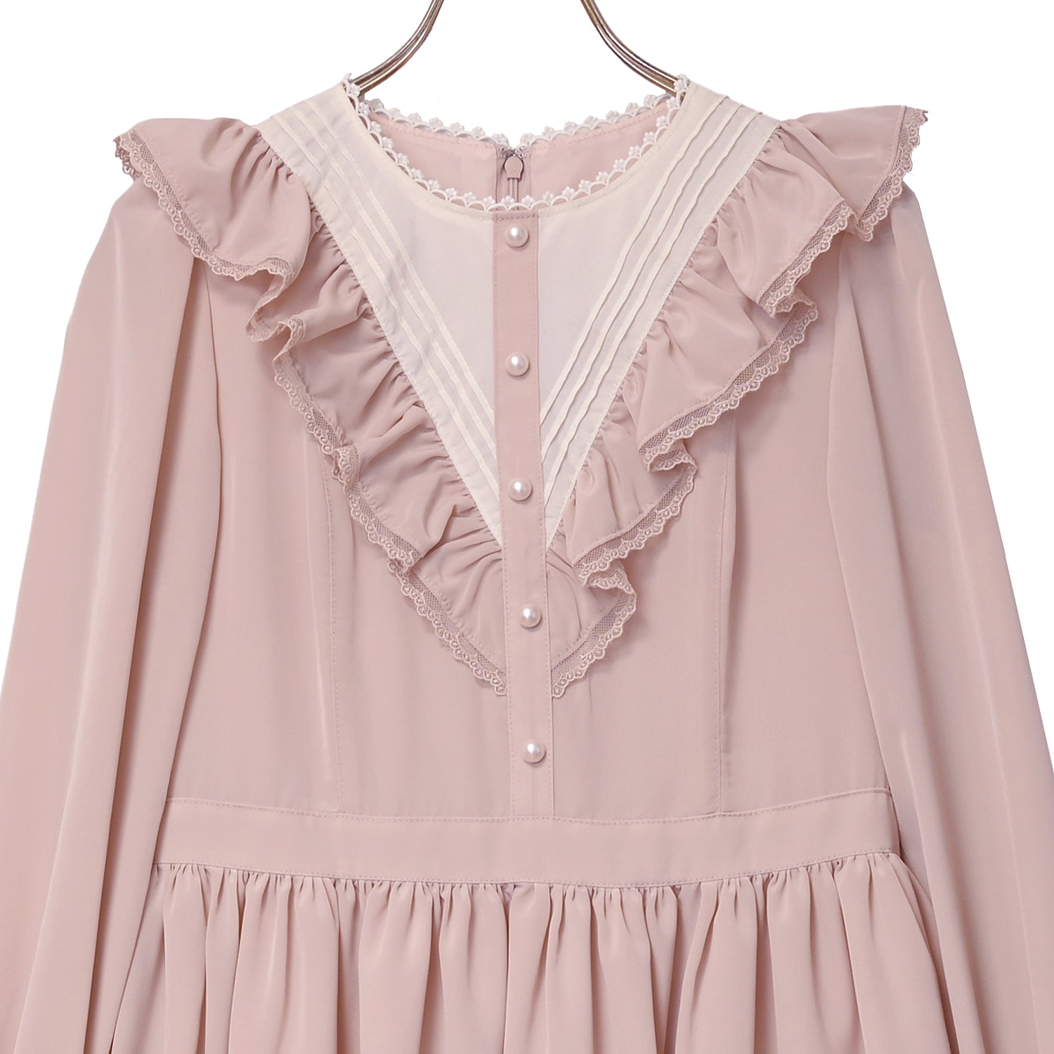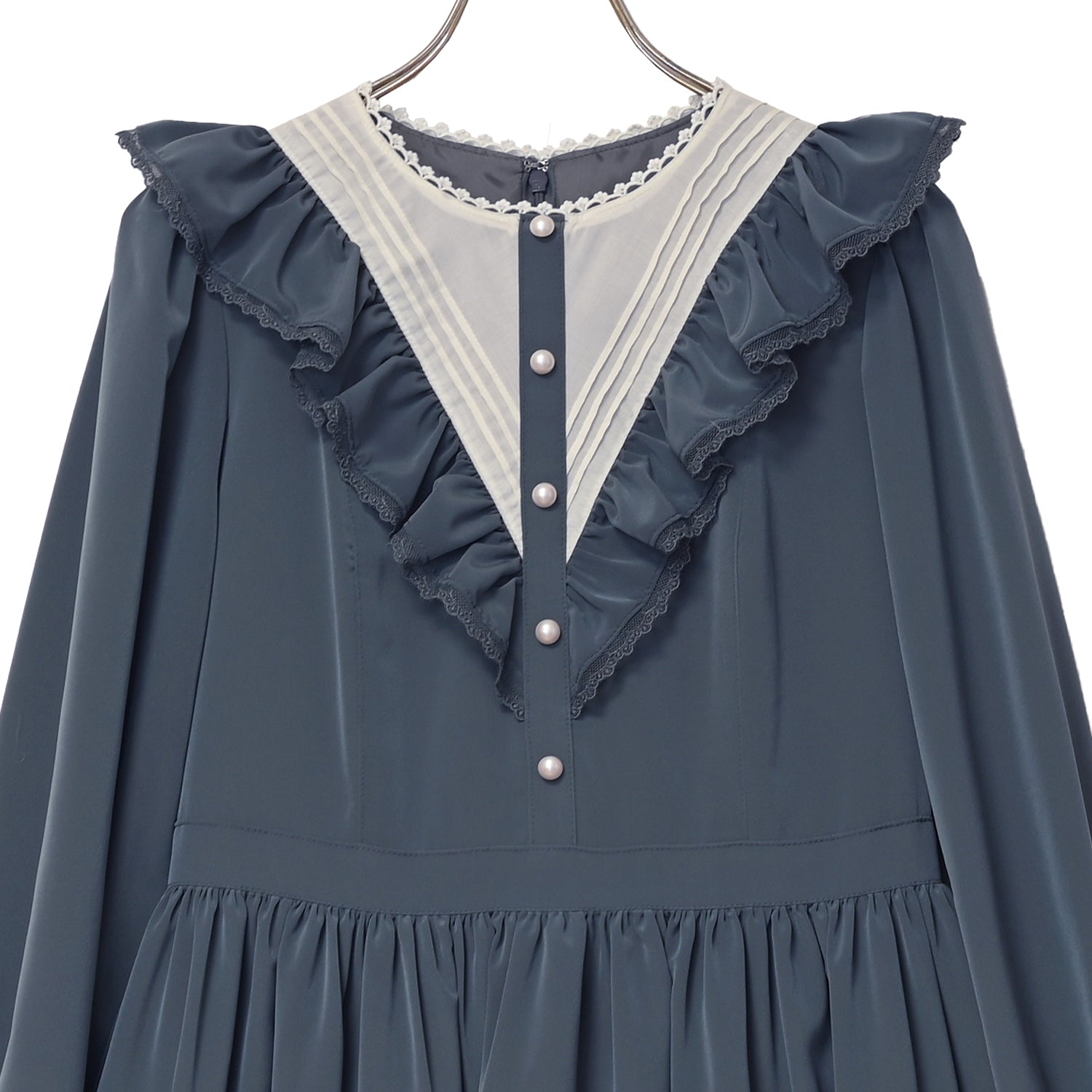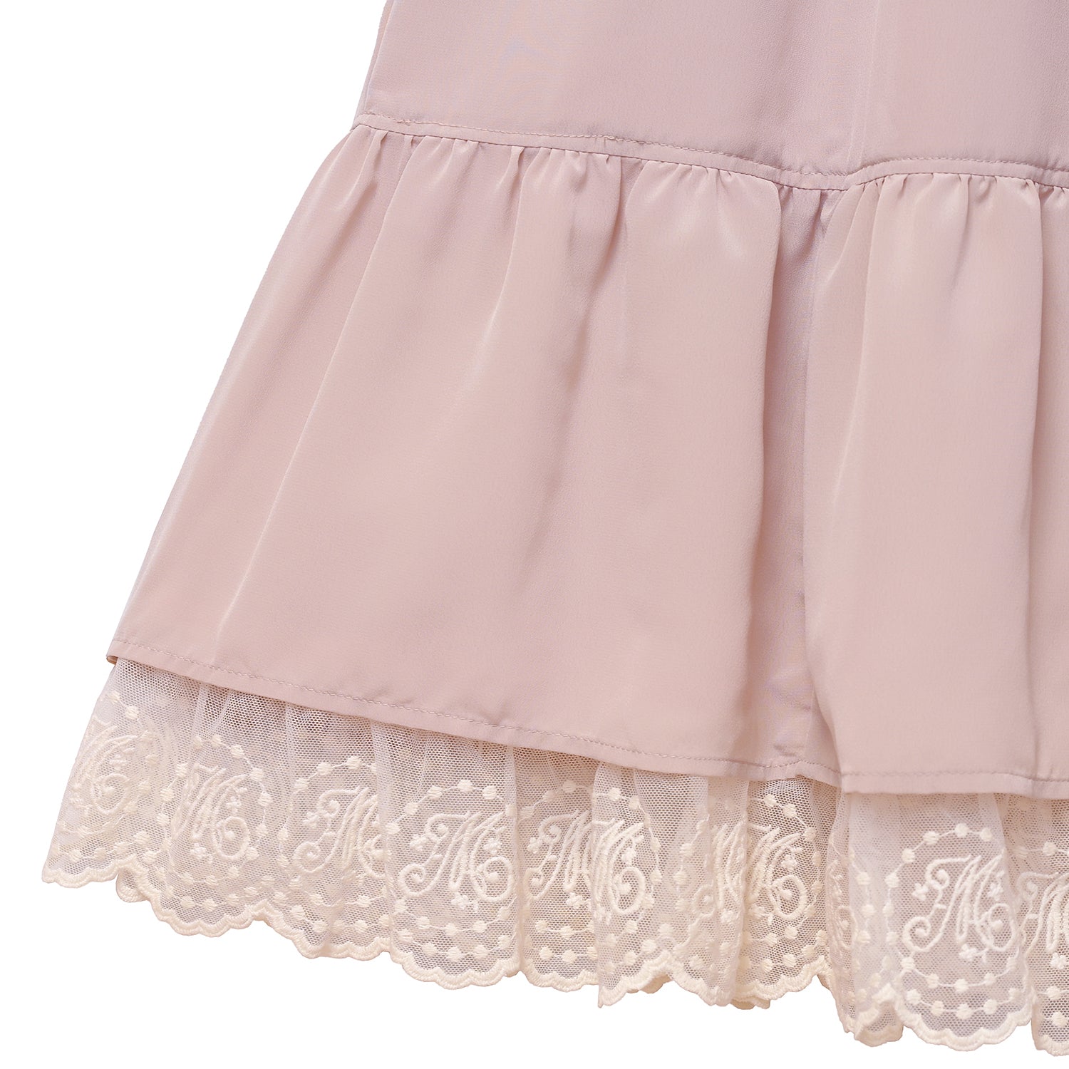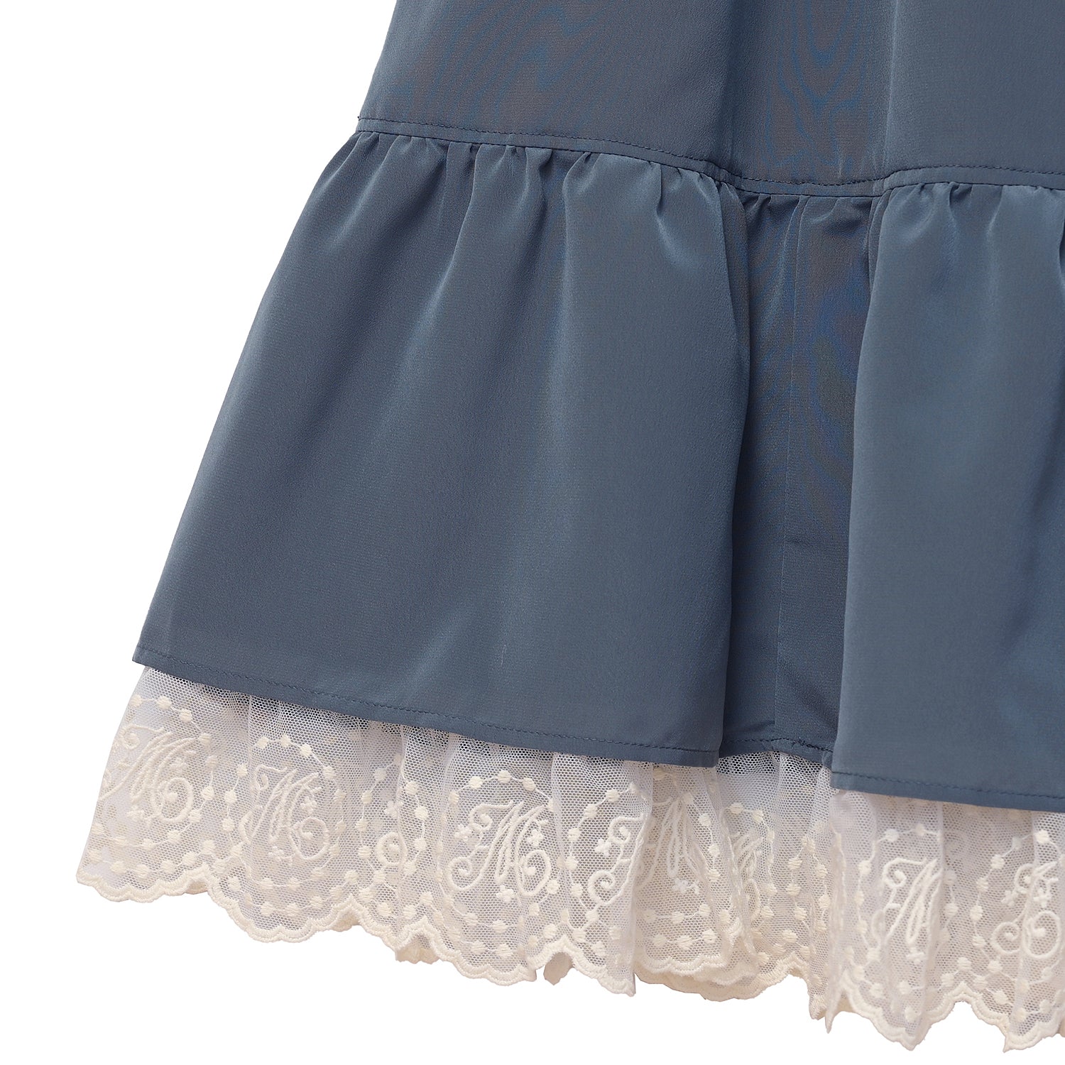 袖口とスカート裾にはオリジナルMelodyレースを使用し、華やかさをプラス。