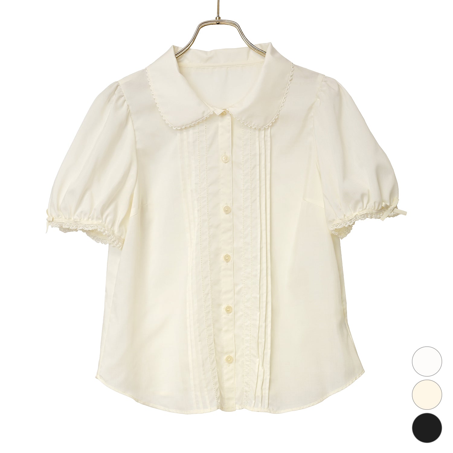 可愛らしいラウンドカラーの半袖ブラウス。