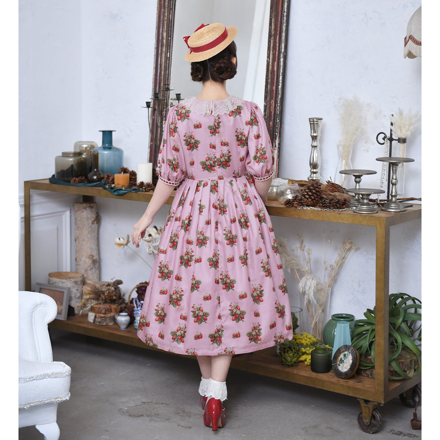 Strawberry time Vネックワンピース