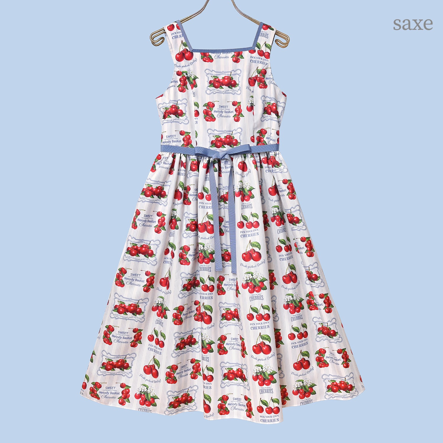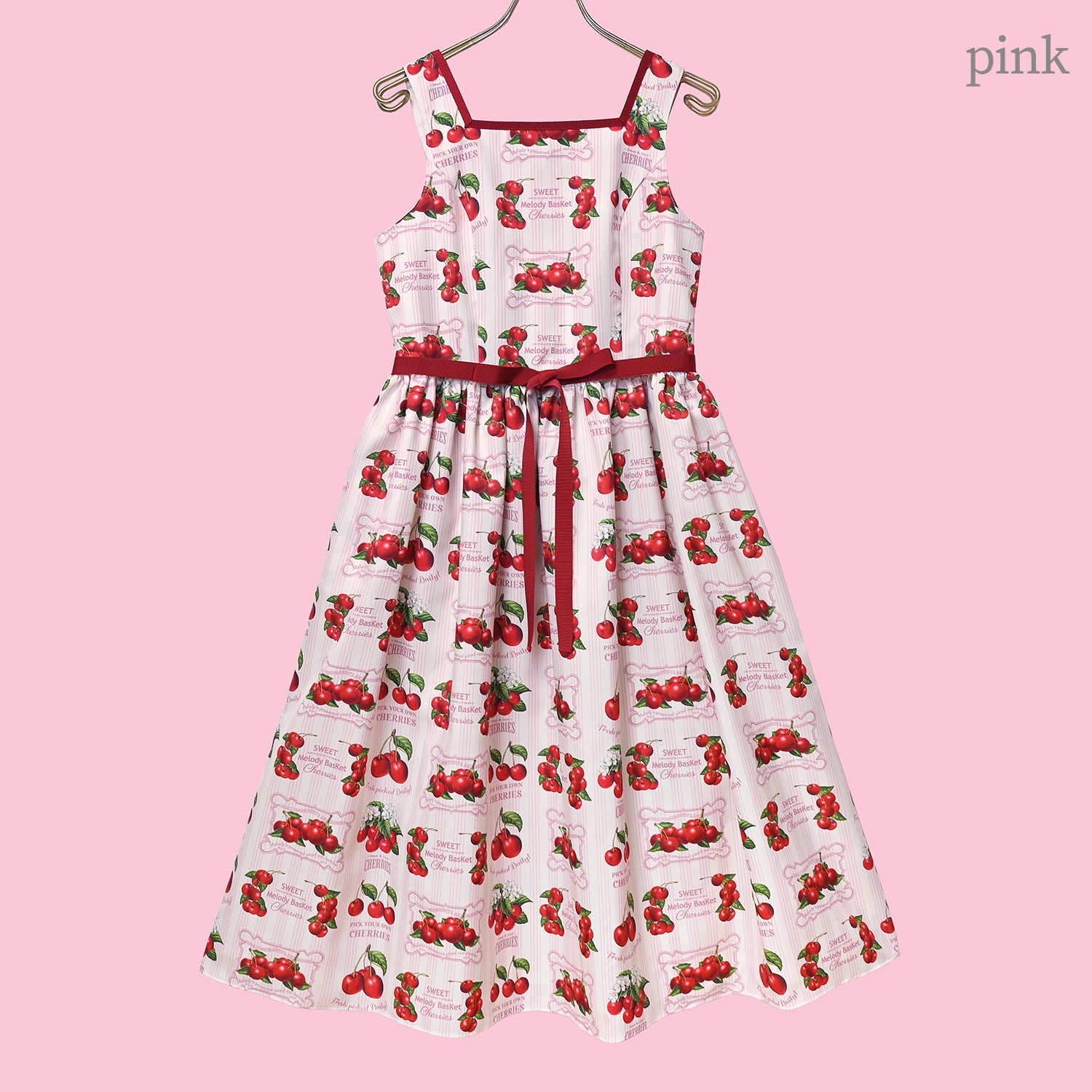 グログランリボンをあしらった、スクエアネックがポイントのジャンパースカート。