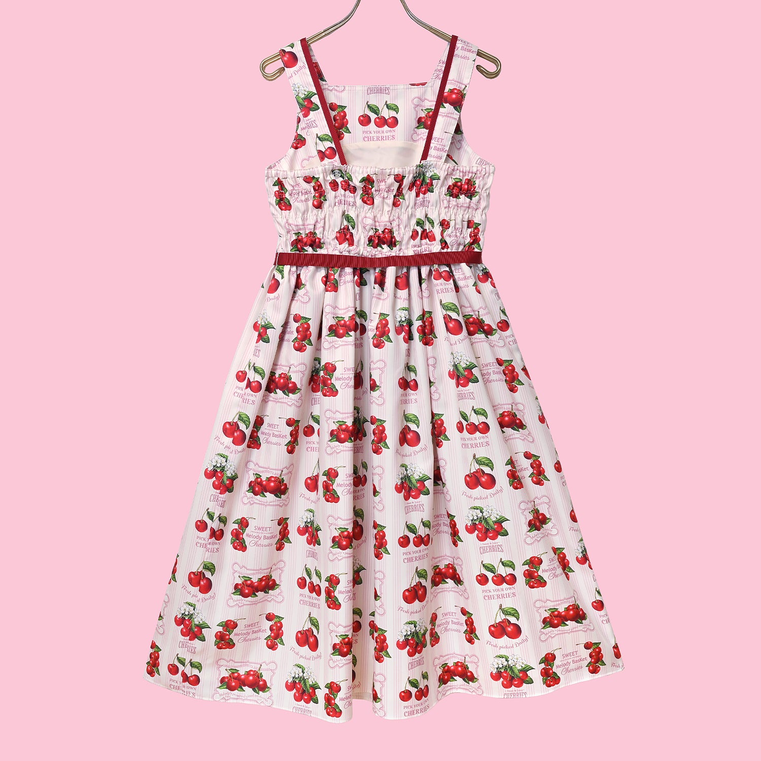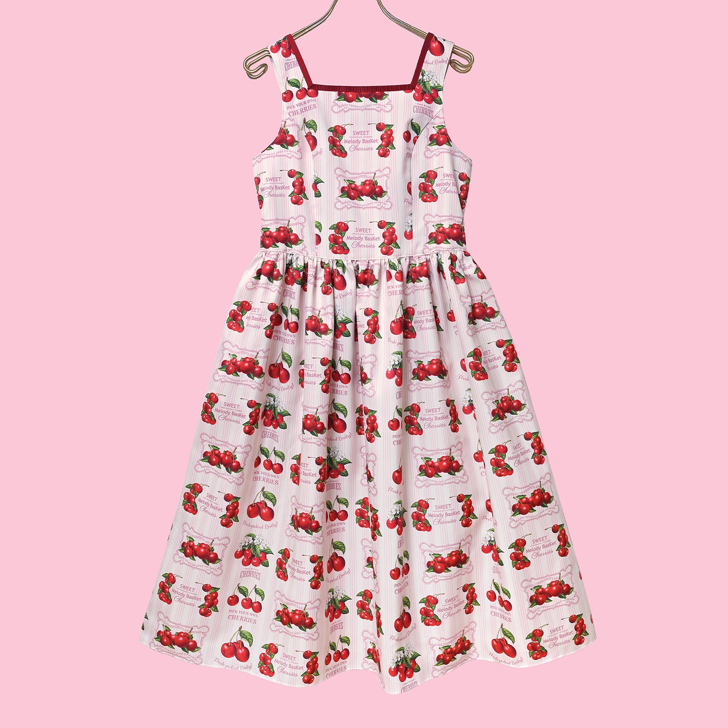 肩紐調節可能。ウエストリボン取り外し可能。スカート右脇ポケット付き。国内生産。