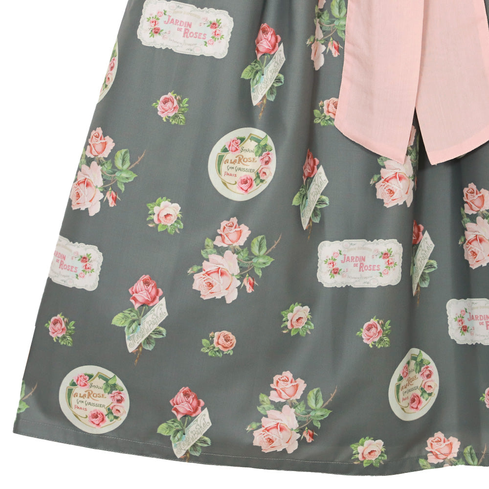 後ろシャーリング仕様。肩紐はボタンで調節可能。スカート右脇ポケット付き。