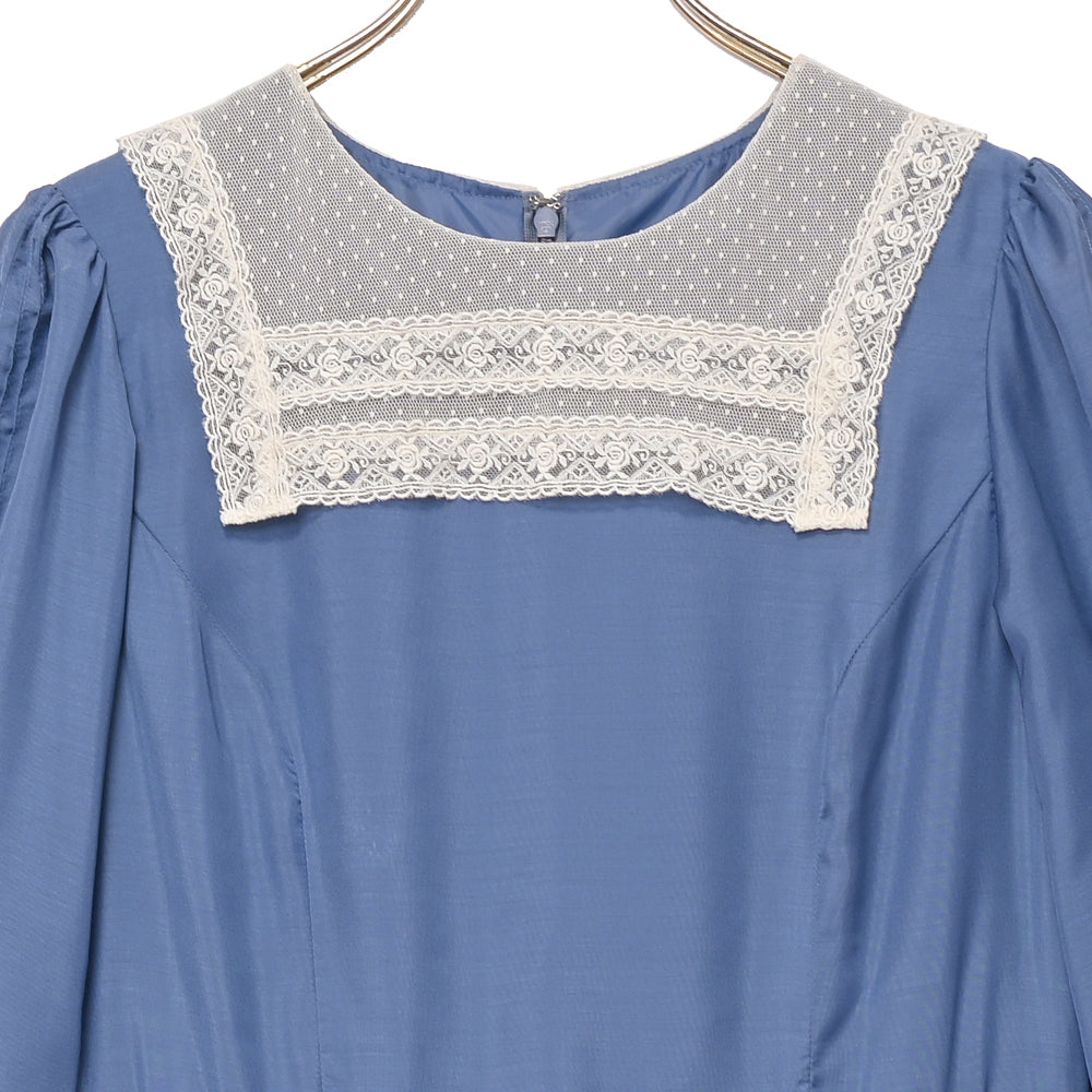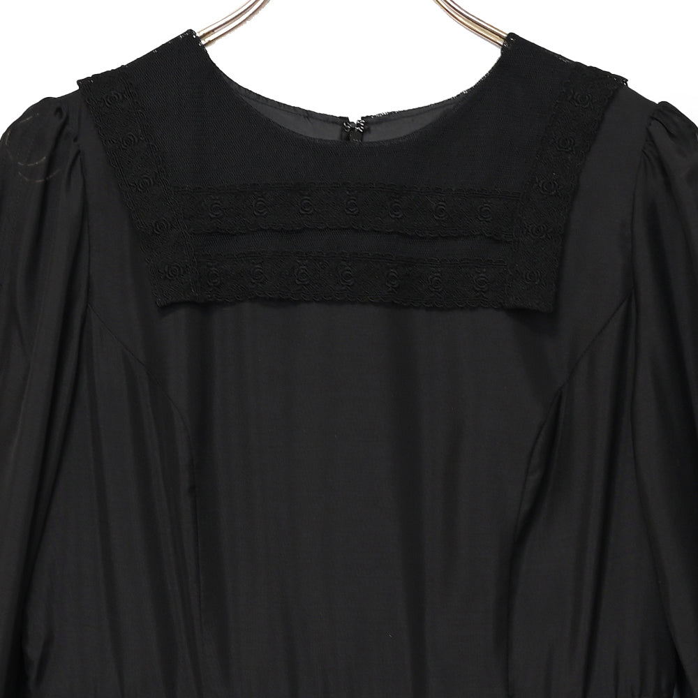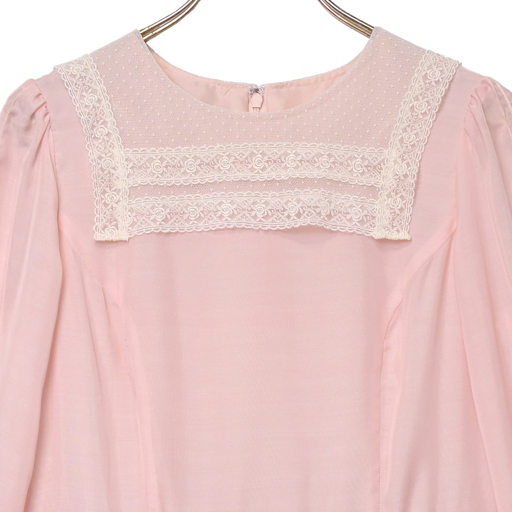 ポイントとなるソフトドットチュール生地の襟には、バラ柄のチュールレースを添えて。