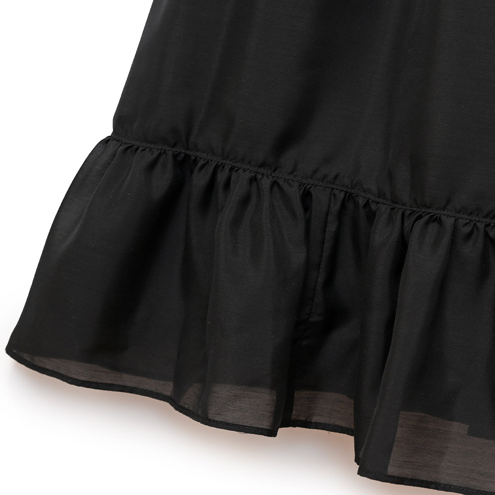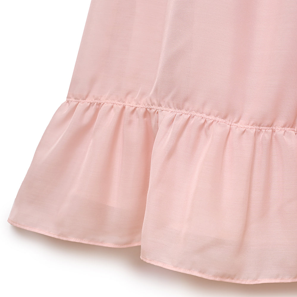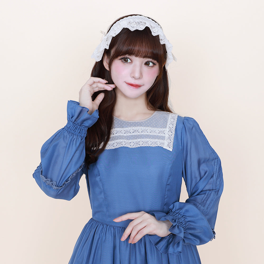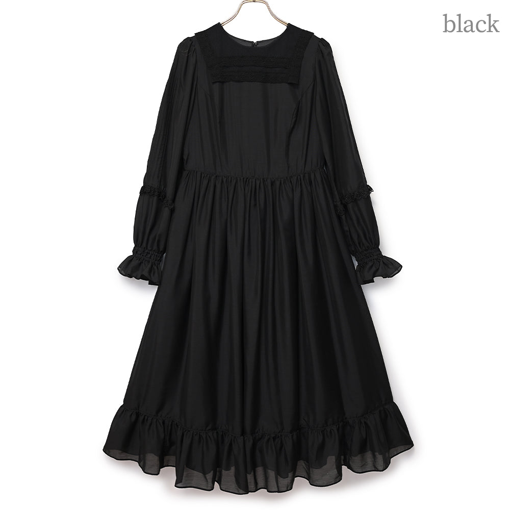 ポイントとなるソフトドットチュール生地の襟には、バラ柄のチュールレースを添えて。