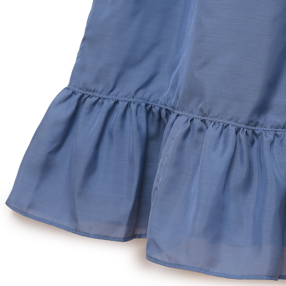 後ろファスナー開閉仕様。袖口・ウエスト後ろゴム仕様。スカート右脇ポケット付き。