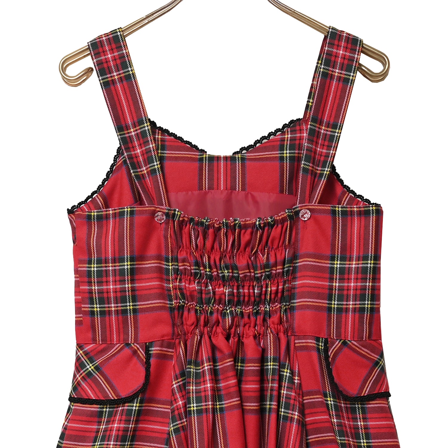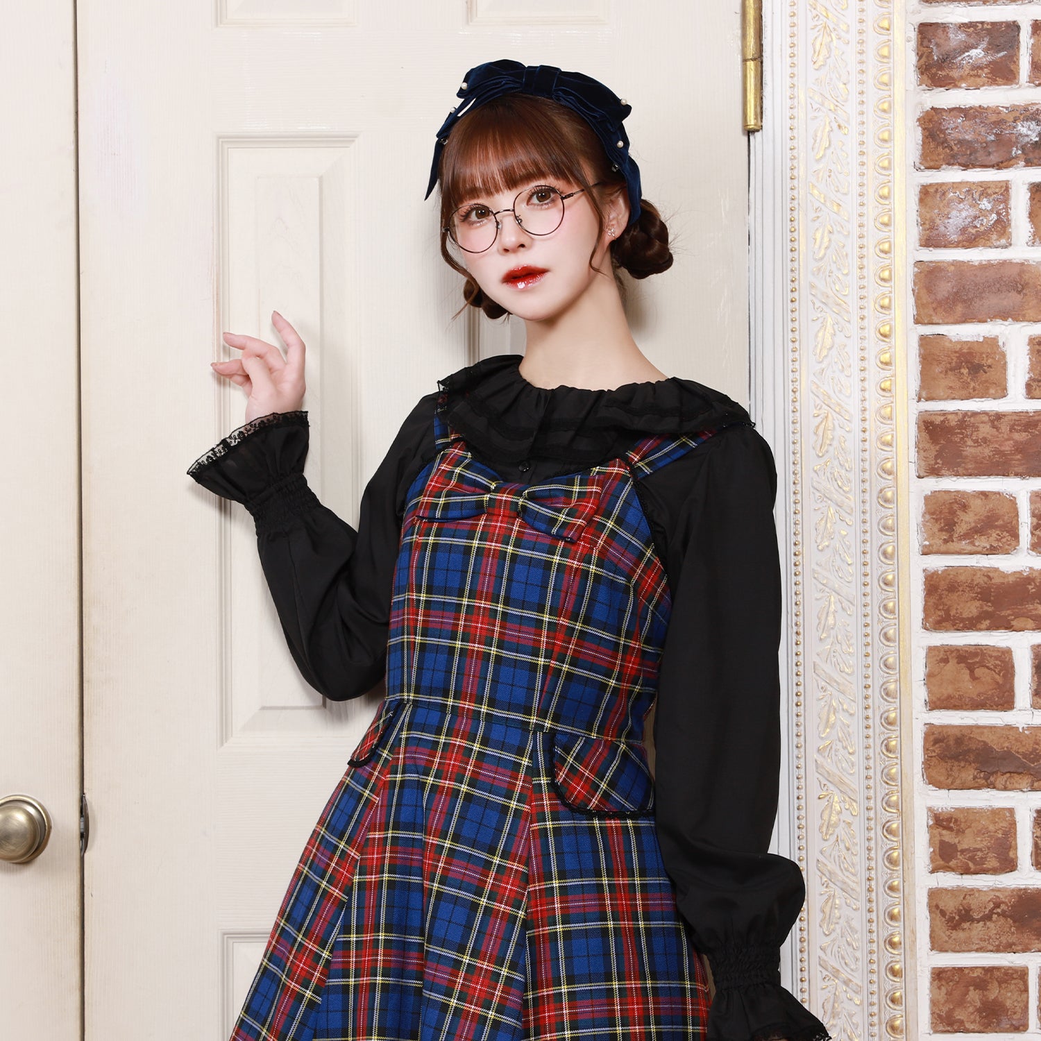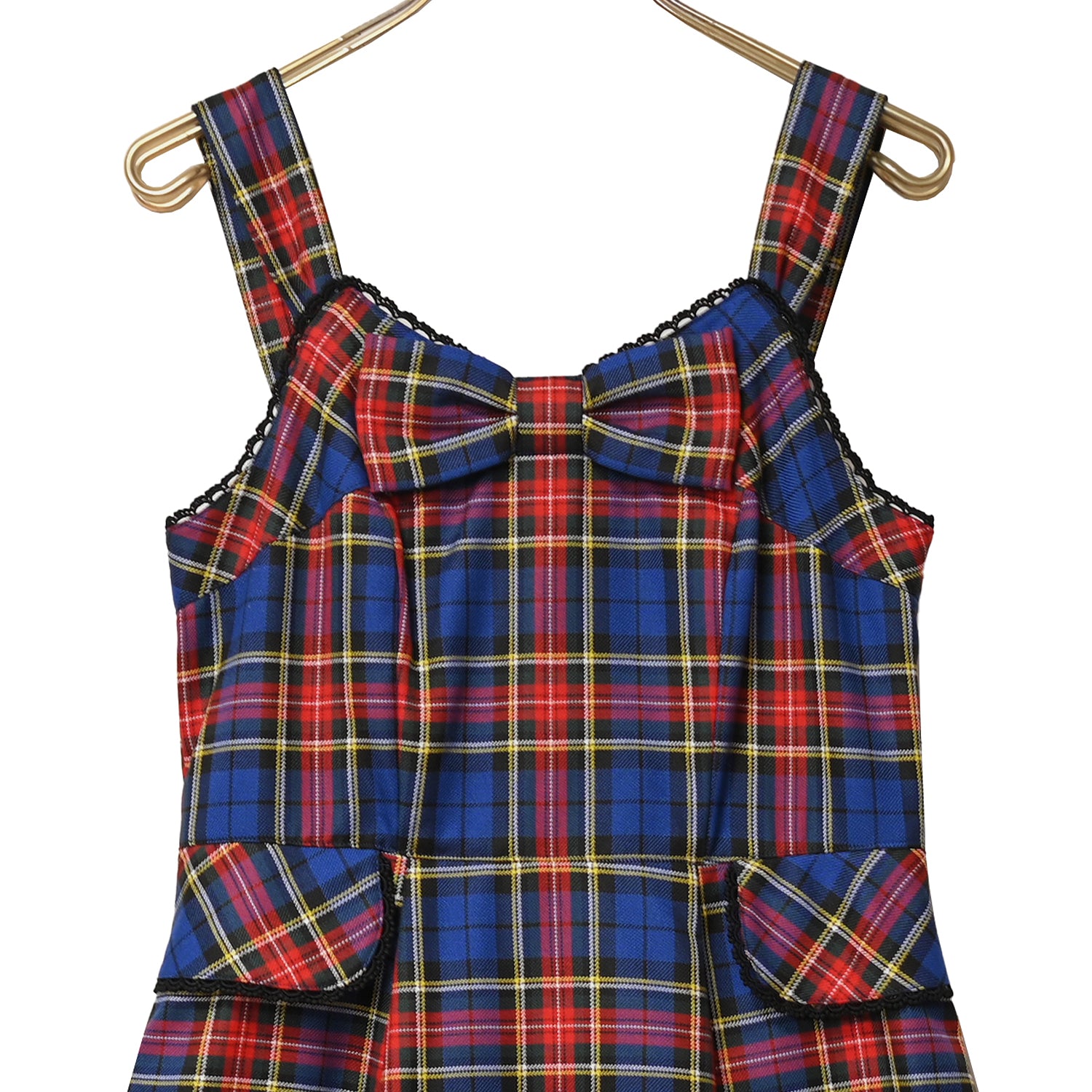 大きなリボンデザインと、ブラックカラーのレースがアクセントになったジャンパースカート。