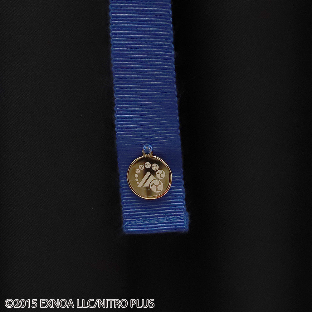 ウエストにはアクセントカラーのブルーのリボンをプラス。リボン先に刀剣男士紋入りのメタルチャーム付きです。