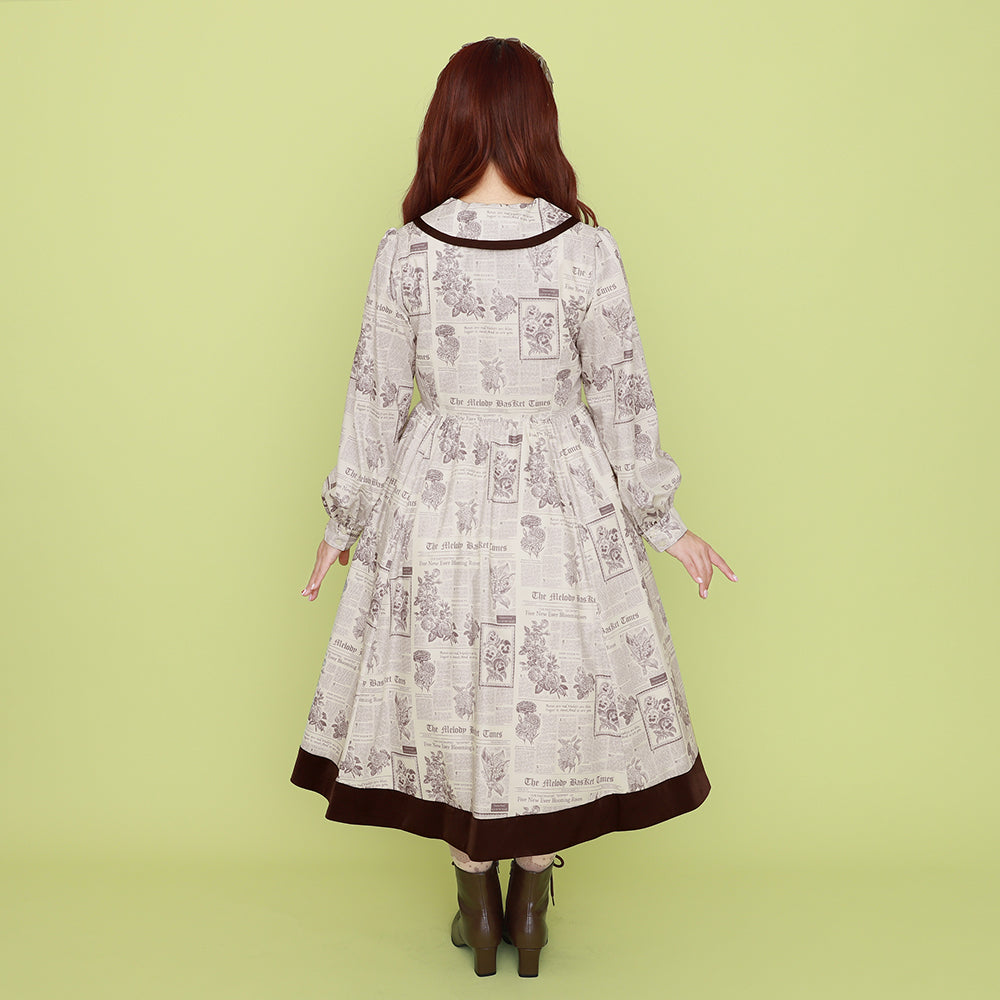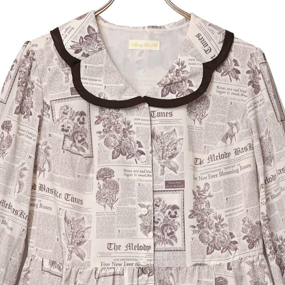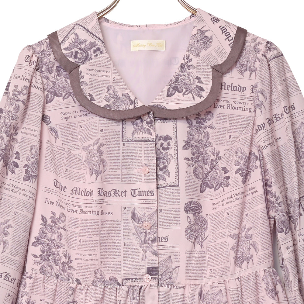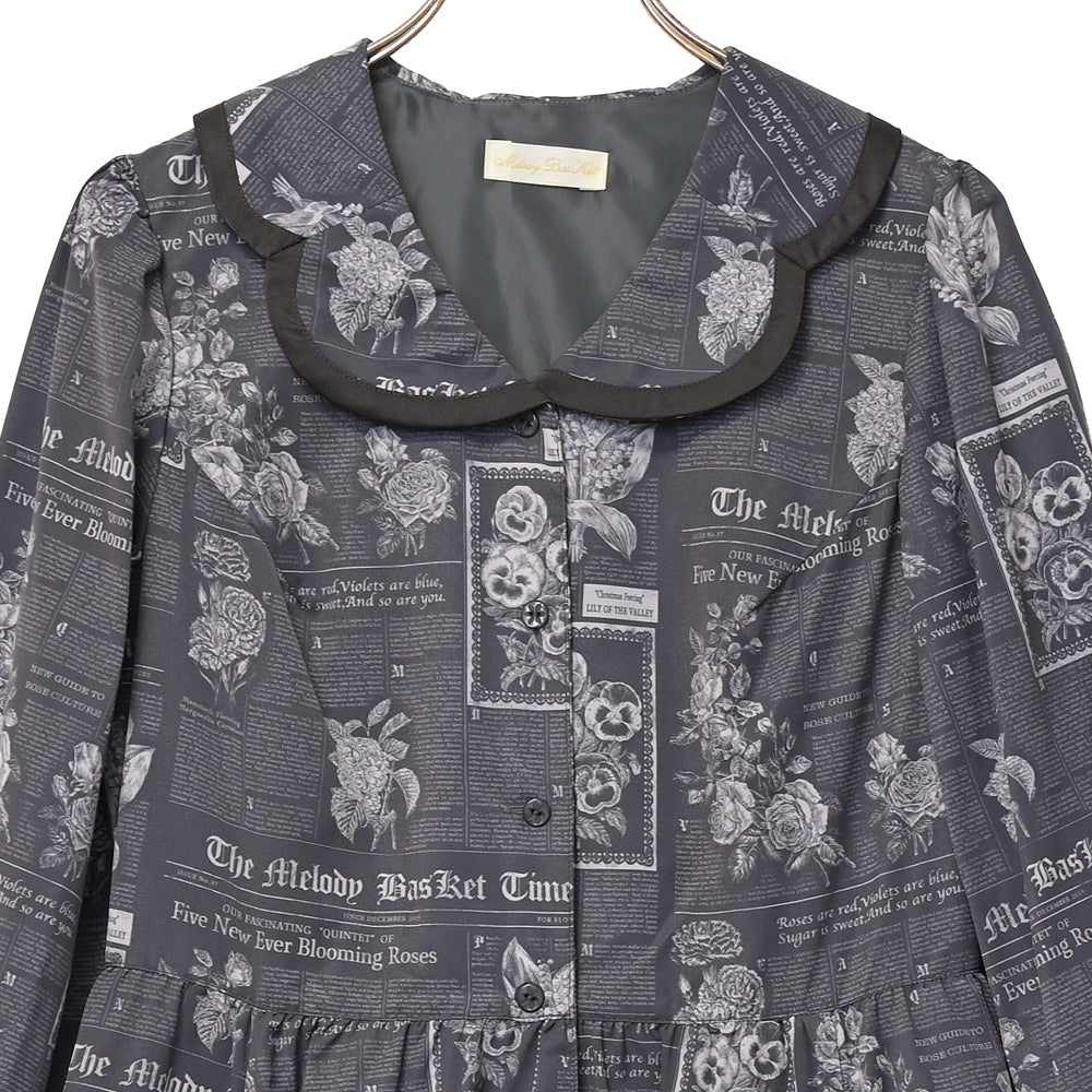 クローバーリーフラペルがポイントのフロントボタンワンピース。